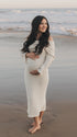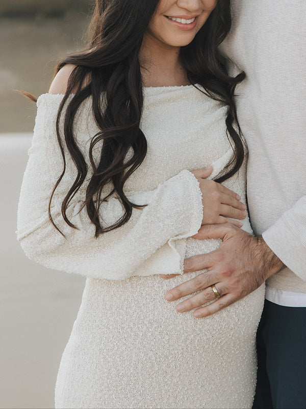 Mumsmode Zwangerschaps Maxi Fotoshoot Jurk Chique Vakantie Gebreide Off Shoulder