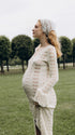 Mumsmode Zwangerschaps Maxi Fotoshoot Jurk Gebreide Enkele Borst Uithollen Ruches Chique