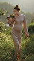 Mumsmode Zwangerschaps Maxi Fotoshoot Jurk Vakantie Dagelijks Rugloos Flare Mouw