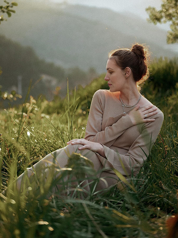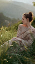 Meet met een zacht meetlint vanaf de naad van het hoogste punt van je schouder & tot aan je zij. De lengte van het kledingstuk wordt gemeten tot aan de zoom.