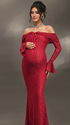 Mumsmode Zwangerschaps Maxi Kanten Jurk Fotoshoot Chique Ceremonie Bodycon Off Shoulder Ruches Zeemeermin