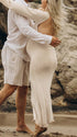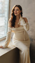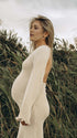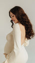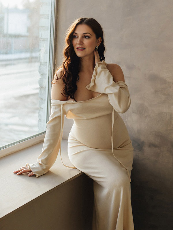 Mumsmode Zwangerschaps Maxi Strand Fotoshoot Jurk Rugloos Gebonden Rug Ruches