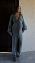 Meet met een zacht meetlint vanaf de naad van het hoogste punt van je schouder & tot aan je zij. De lengte van het kledingstuk wordt gemeten tot aan de zoom.