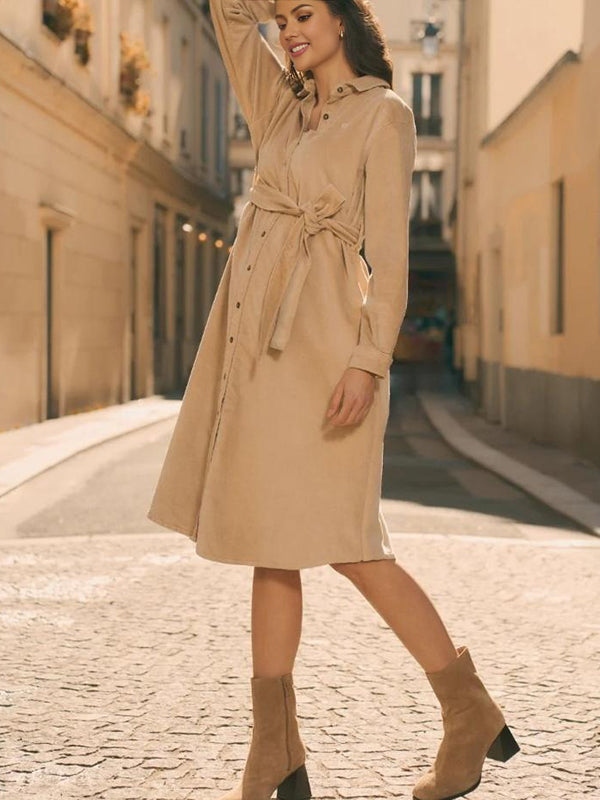 Mumsmode Zwangerschaps Midi Blouses Jurk Chique Werk Riem Boutonnage