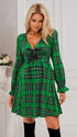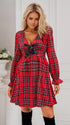 Mumsmode Zwangerschaps Midi Kerstmisjurk Chique Plaid Vlinderdas Ruches Trapeze