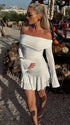 Mumsmode Zwangerschaps Mini Daily Jurk Vakantie Ruches Off Shoulder Trapeze Gekreukt Flare Mouw