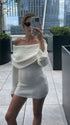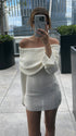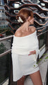 Mumsmode Zwangerschaps Mini Jurk Vakantie Gebreide Off Shoulder Wit