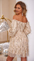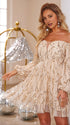Detail : Pailletten, kwasten, off shoulder, trapeze