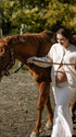 Meet met een zacht meetlint vanaf de naad van het hoogste punt van je schouder & tot aan je zij. De lengte van het kledingstuk wordt gemeten tot aan de zoom.
