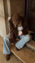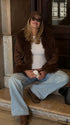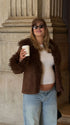Meet met een zacht meetlint vanaf de naad van het hoogste punt van je schouder & tot aan je zij. De lengte van het kledingstuk wordt gemeten tot aan de zoom.