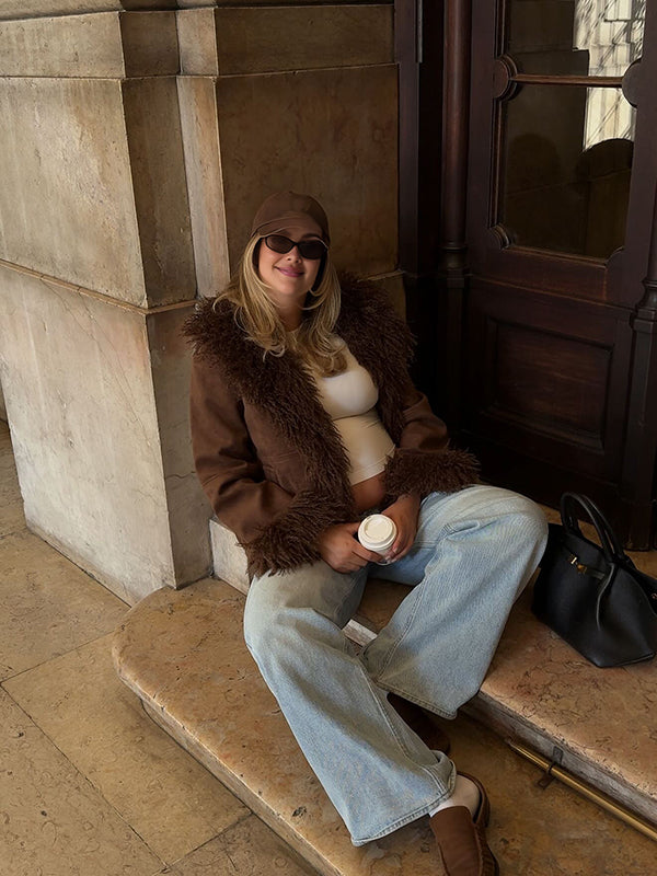 Mumsmode Zwangerschaps Teddy Jassen Chique Dagelijks Patchwork Harig Zakken Zwangerschapswinterjas