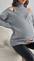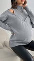 Mumsmode Zwangerschaps Truien Chique Mode Off Shoulder Patchwork Gebreide
