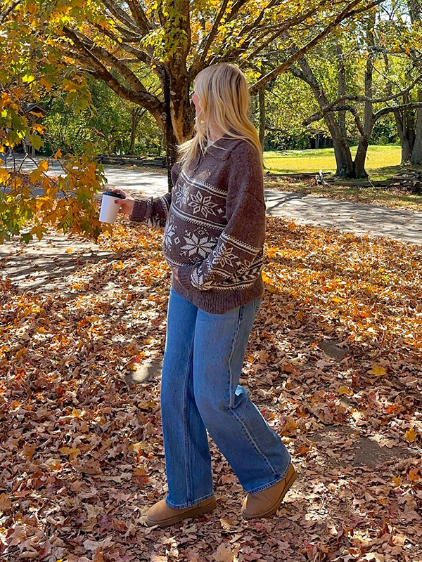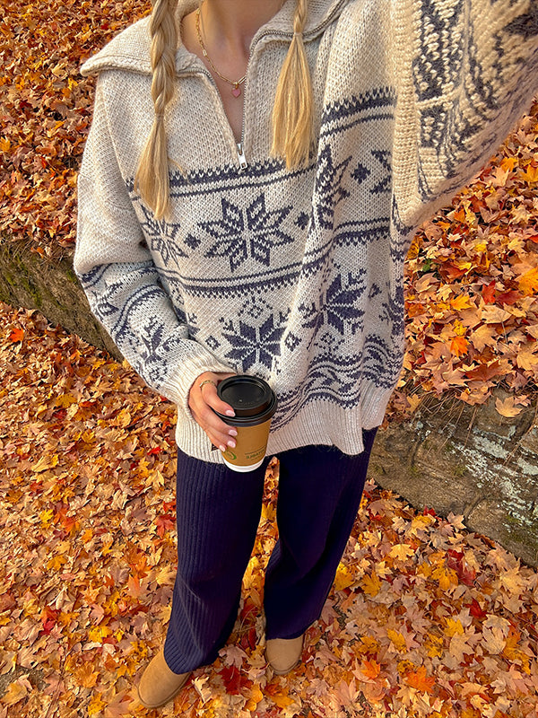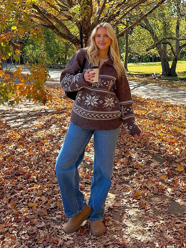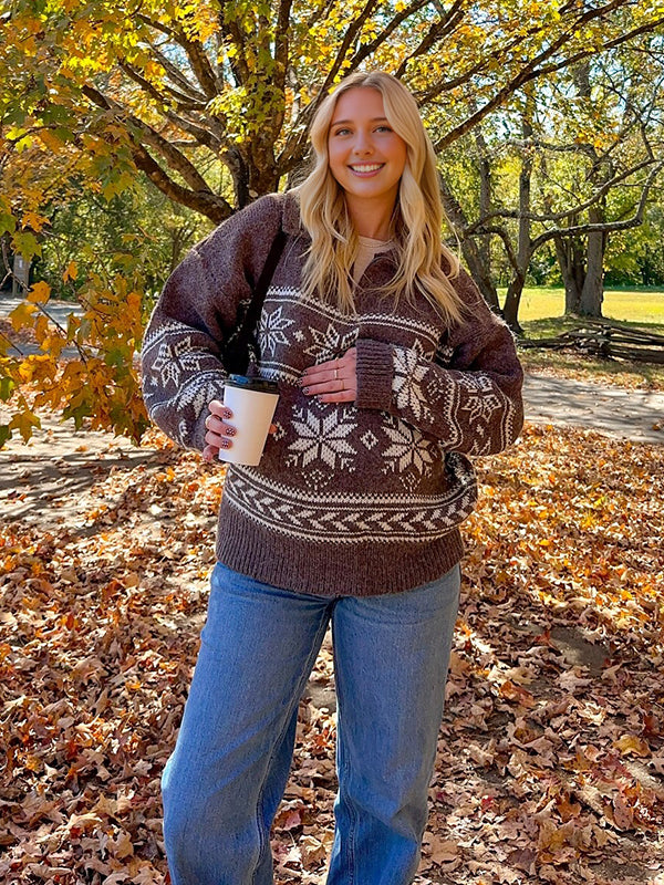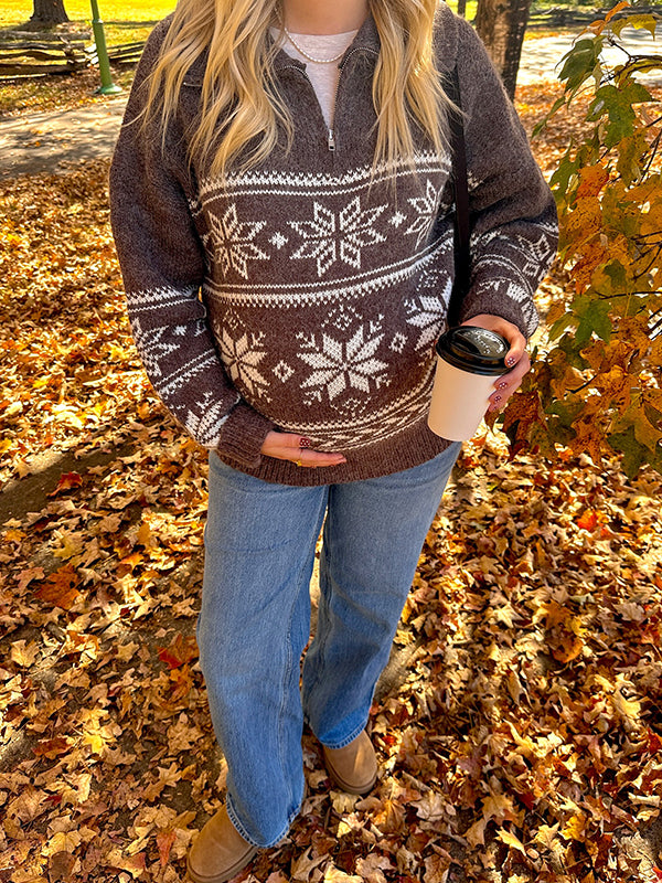 Mumsmode Zwangerschaps Truien Dagelijks Sneeuwafdruk Rits Gebreide Vintage