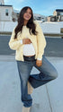 Meet met een zacht meetlint vanaf de naad van het hoogste punt van je schouder & tot aan je zij. De lengte van het kledingstuk wordt gemeten tot aan de zoom.