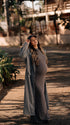 Meet met een zacht meetlint vanaf de naad van het hoogste punt van je schouder & tot aan je zij. De lengte van het kledingstuk wordt gemeten tot aan de zoom.