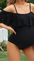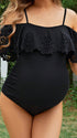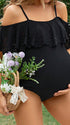Mumsmode Zwangerschaps Zwemkleding Elegant Strand Ruches Uithollen Spaghetti Bodycon Off Shoulder