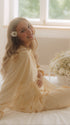 Meet met een zacht meetlint vanaf de naad van het hoogste punt van je schouder & tot aan je zij. De lengte van het kledingstuk wordt gemeten tot aan de zoom.