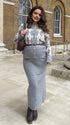 Meet met een zacht meetlint vanaf de naad van het hoogste punt van je schouder & tot aan je zij. De lengte van het kledingstuk wordt gemeten tot aan de zoom.