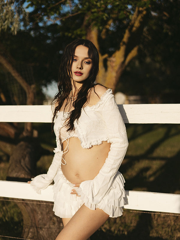 Detail : 2-in-1, ruches, tule, kanten, gebreide