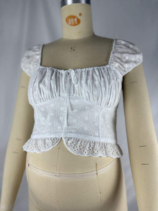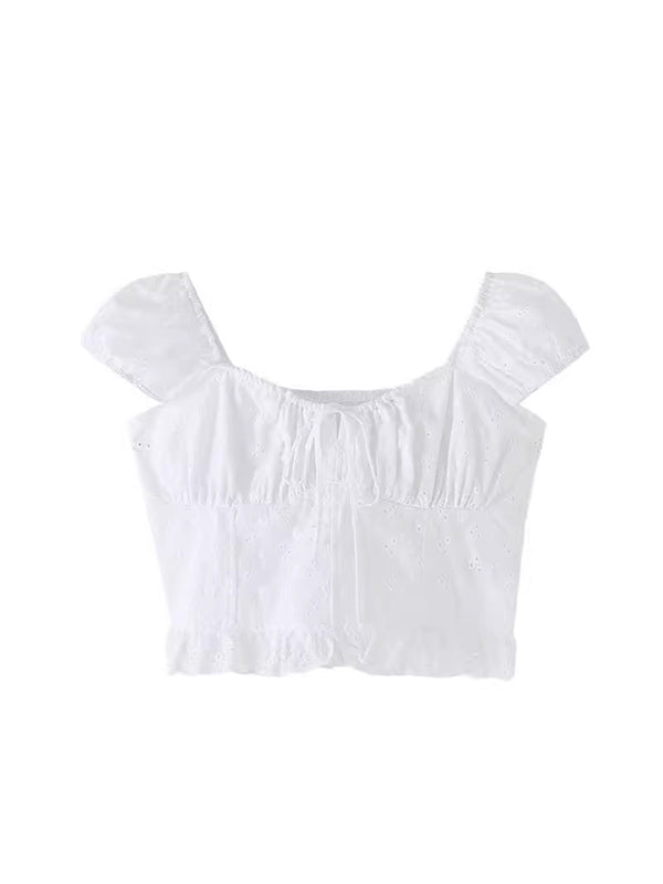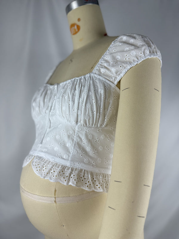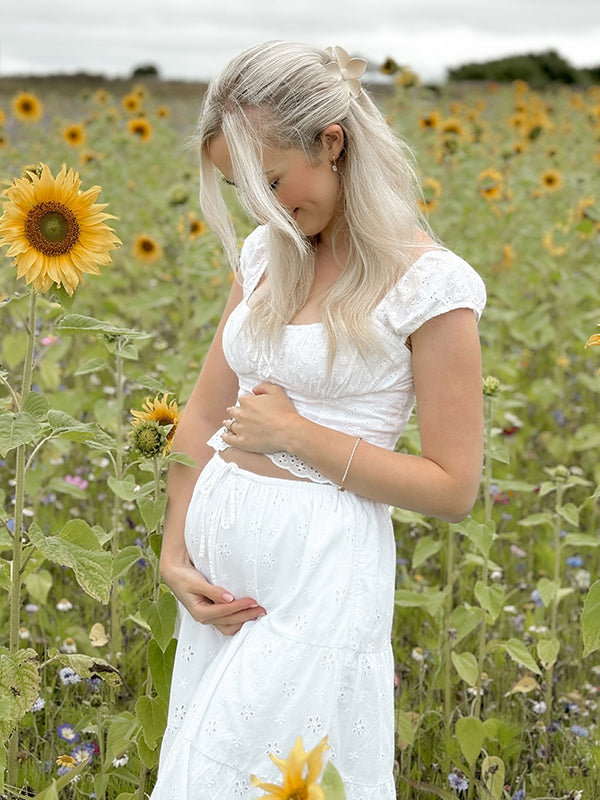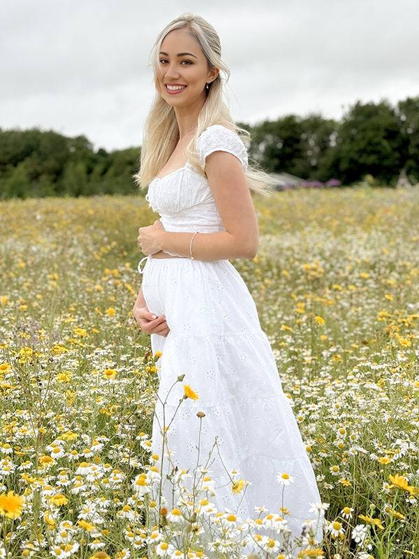 T-shirts Zwangerschaps Engels Borduurwerk Koord Ruches Wit
