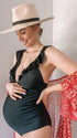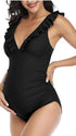 Zwemkleding Zwangerschaps Ruches Bodycon Rugloos Zwart
